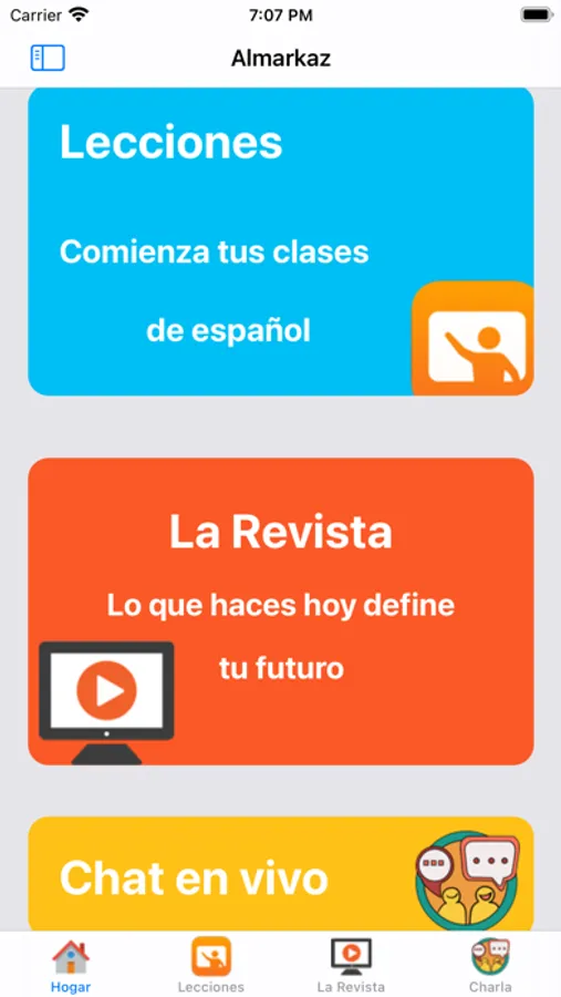 تطبيق ”المركز“ إنتاج خاص لمساعدة المتكلمين بالعربية على تعلم اللغة الأسبانية. كل الطلاب المسجلين فى احد فروع ”المركز الثقافي العربي الأسباني“ لهم حق التمتع بمراجعة الدروس التى يحصلون عليها فى المركز من خلال التطبيق على الهاتف الجوال. كذلك يتوفر لهم ميزة الاتصال المباشر بالمعلم الخاص بهم للاستفسار عن صعوبة يواجهونها. تطبيق ”المركز“ يجعل الدراسة متواصلة بين الحضور فى الفصول وفى أوقات الفراغ المتاحة للطالب خلال الثلاثة مستويات التى يقدمها.