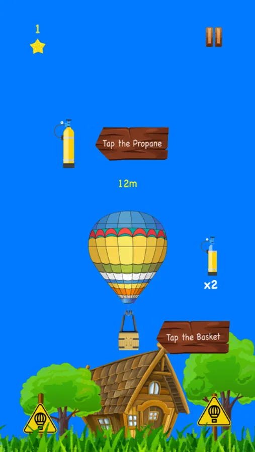 Tap on Balloon's basket to burn propane and rise. Tap on it's Envelope to vent and slow down. Make sure you pick up Gas along the way.
