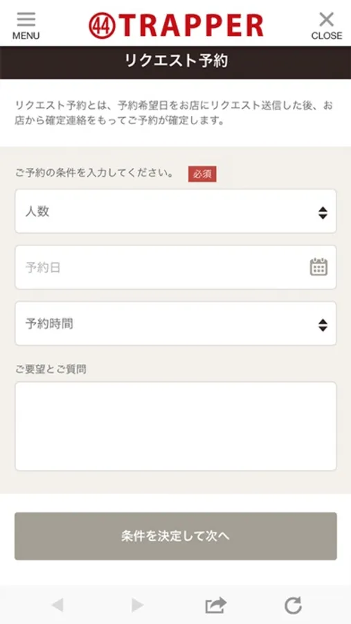 希望のメニュー・日時を指定して送信するだけで予約を依頼できます。