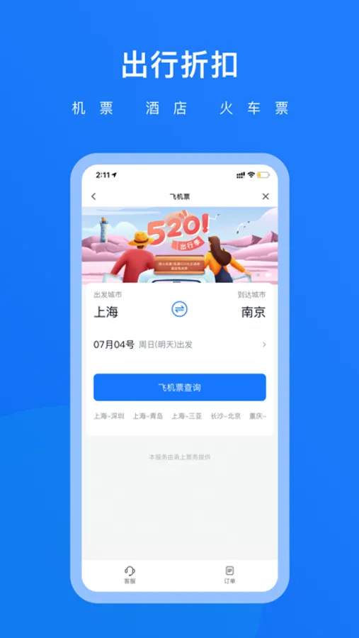 专注于一站式、一体化的商旅服务,提供机票预定、火车票预定、酒店预定等服务,创新研发了多渠道比价、低价检测推荐、多级在线审批、全程费用管控等智慧管理功能。