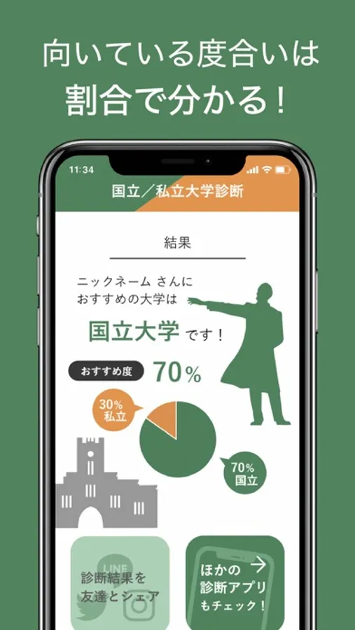 ・診断結果を、友達にSNSを用いて共有することが可能です。