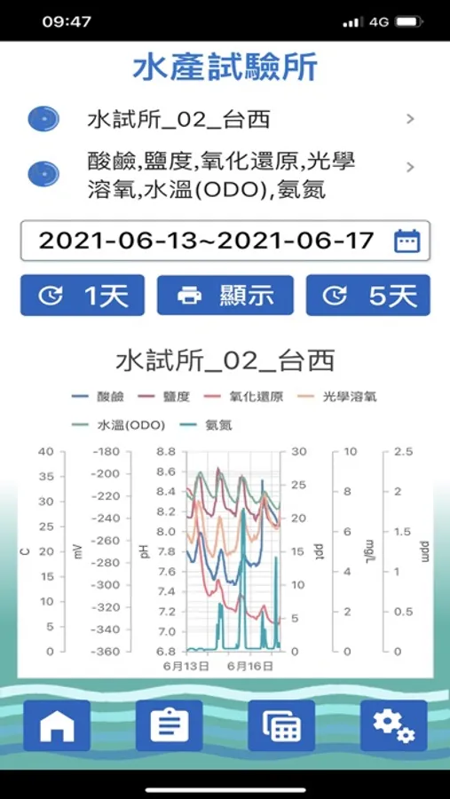 水質監測最大用途在水產養殖部分, 可監測水質的數據 曲線 警報設定 清池設定還有溫度單位選項等等.
