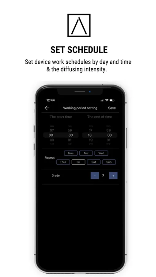 AROMA 24/7 Smart Scent Diffusers can be connected via this app. The Smart Scent Diffuser app helps you to identify the device, set device controls like diffuser work schedule and diffuser intensity.