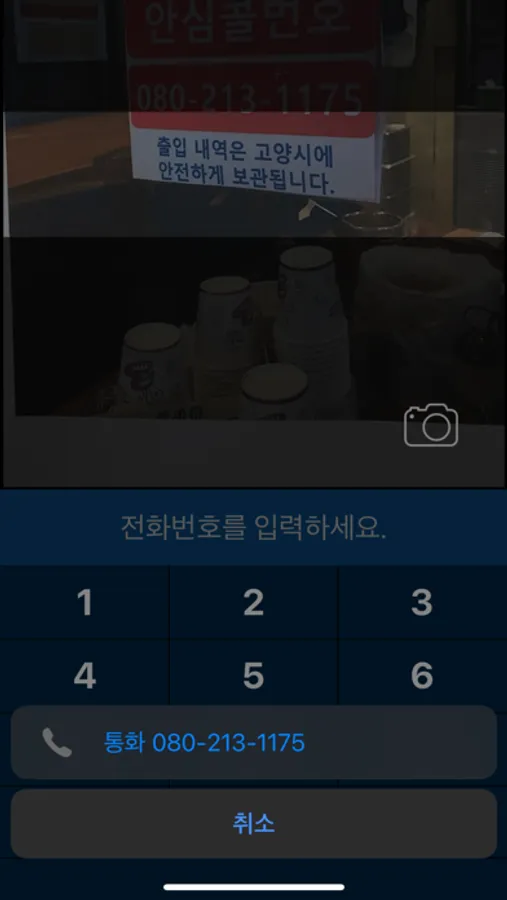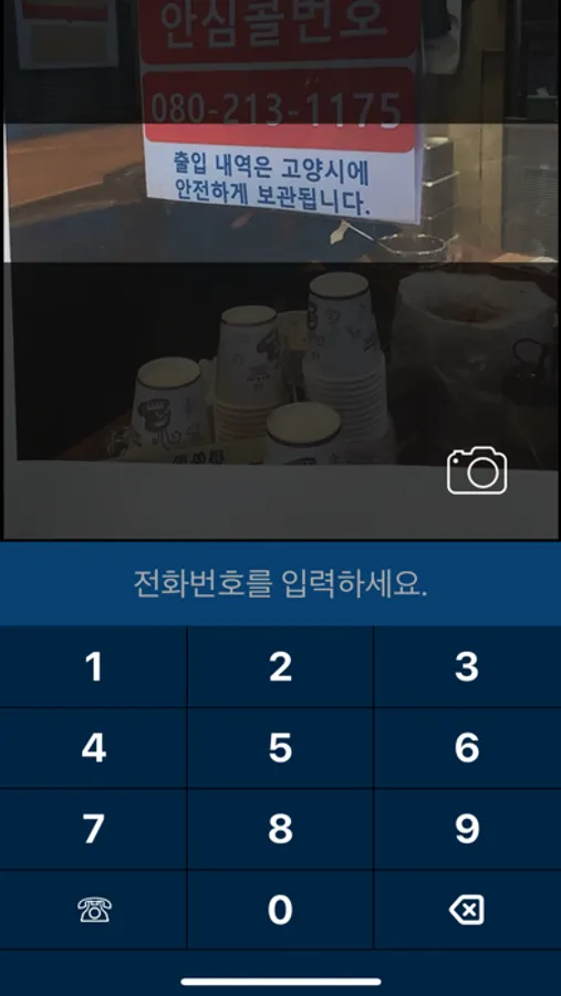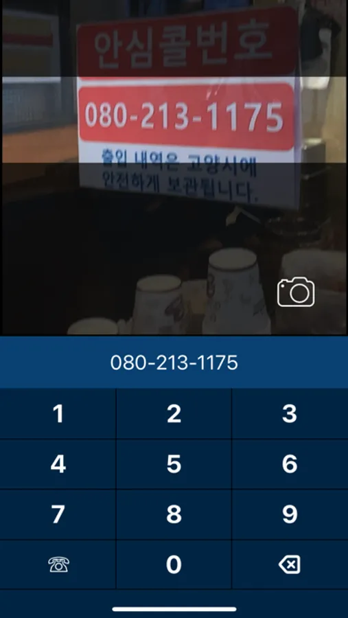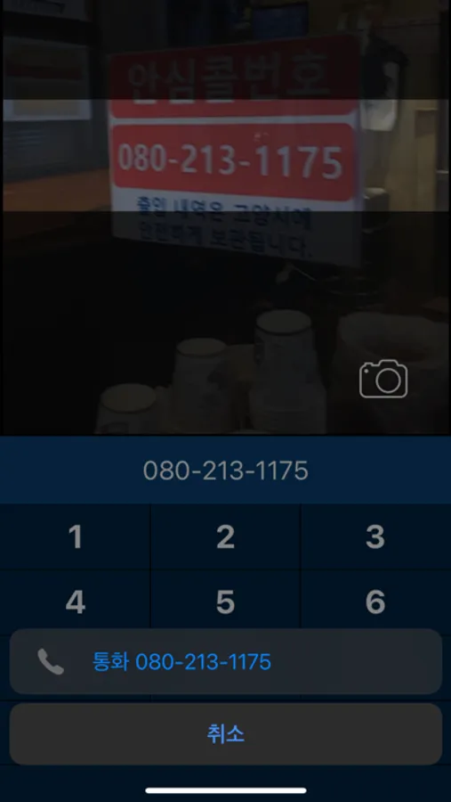 - 인식이 불가능한 악필이거나 스캔영역에 전화번호를 맞춰넣기 힘들경우 화면을 터치하여 사진을 찍은 후 사진을 보며 직접 전화번호를 입력할 수 있습니다.