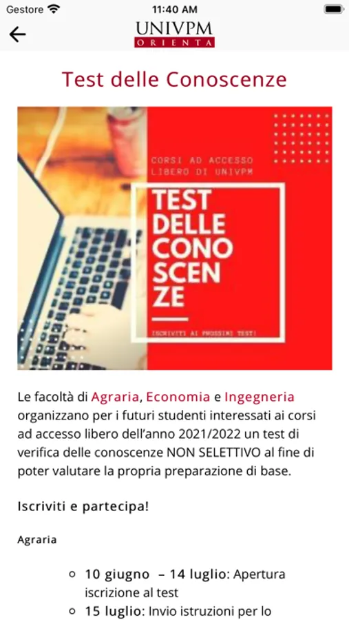 -Su "Scopri Univpm" potrai trovare tutte le informazioni relative a tasse e benefici economici, servizi di supporto alla persona, alloggi e residenze, sport e tempo libero, possibilità di studiare all’estero, test delle conoscenze per i corsi ad accesso libero e modalità di ammissione per i corsi ad accesso programmato.