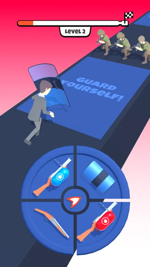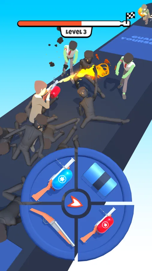 - Choose the right weapon from the gun wheel to defeat your opponents!