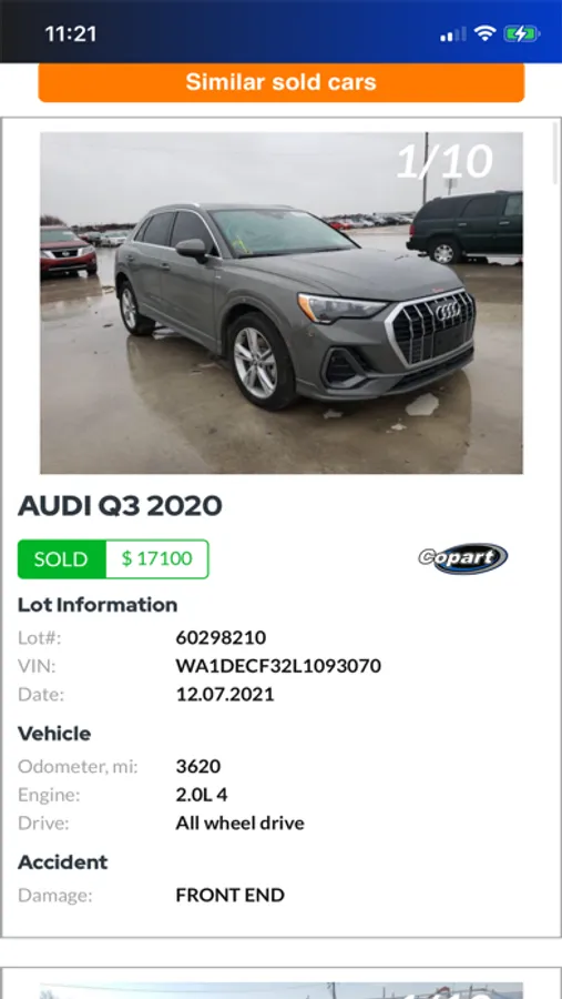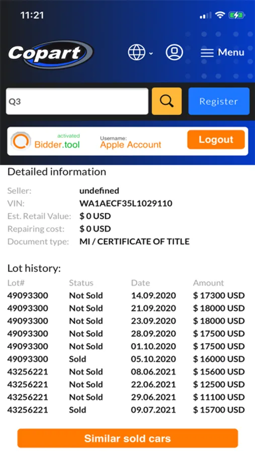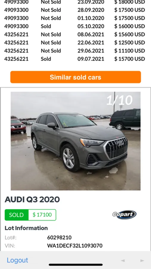 Displaying the history of the car sold: the car was previously put up for auction, the price for the winning bid, sold or not.