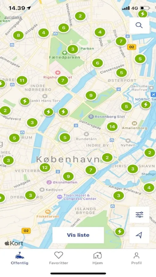 • Filtrere kortet over ladestandere på almindelige-, hurtige- og lynladere