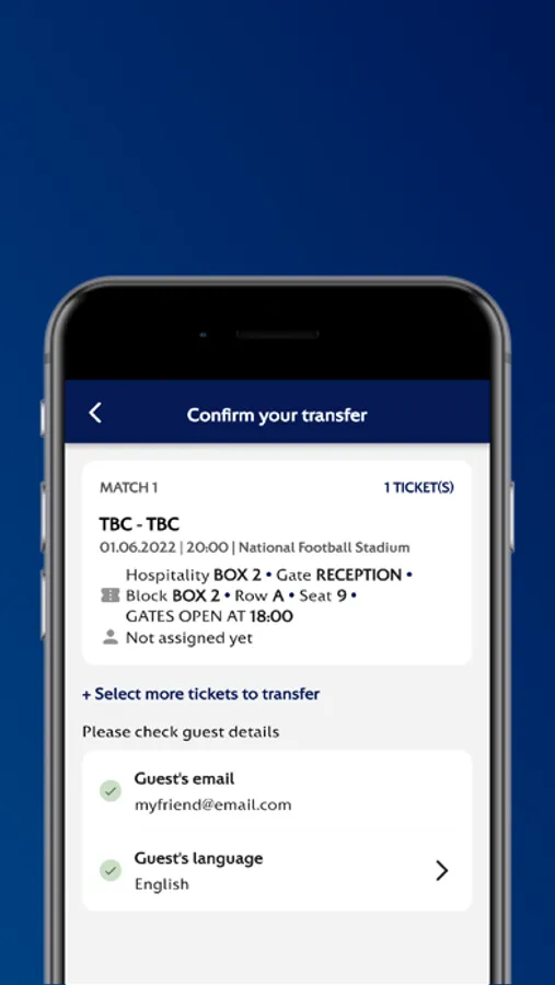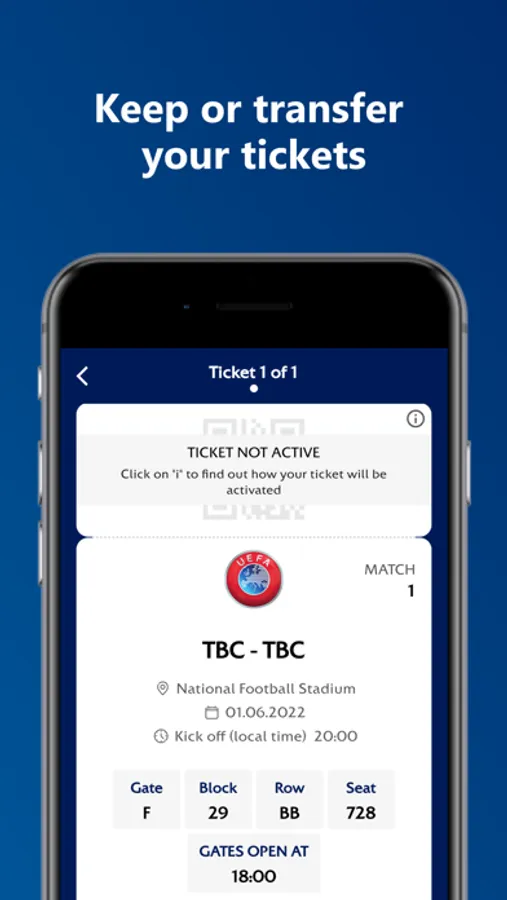With the UEFA Mobile Tickets app, Fans who have tickets can securely download, transfer, keep, assign a guest a ticket, anytime and anywhere on a mobile device.