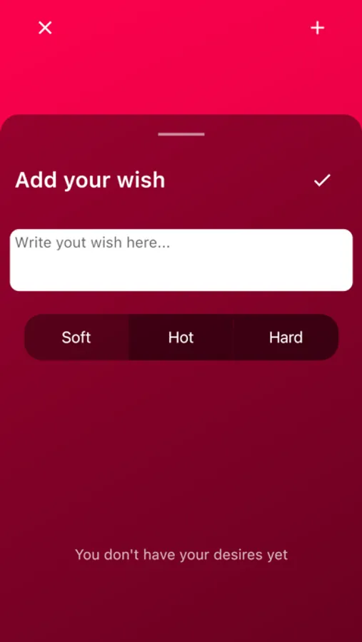 Imagine that you won a wish from your girlfriend or boyfriend, but you don't know what wish to make. Start this sex game and it will show you any vulgar random desire. You choose the level of vulgarity yourself, and you can gradually increase it! In total, there are 3 levels of vulgarity and more than 1000 desires in total.