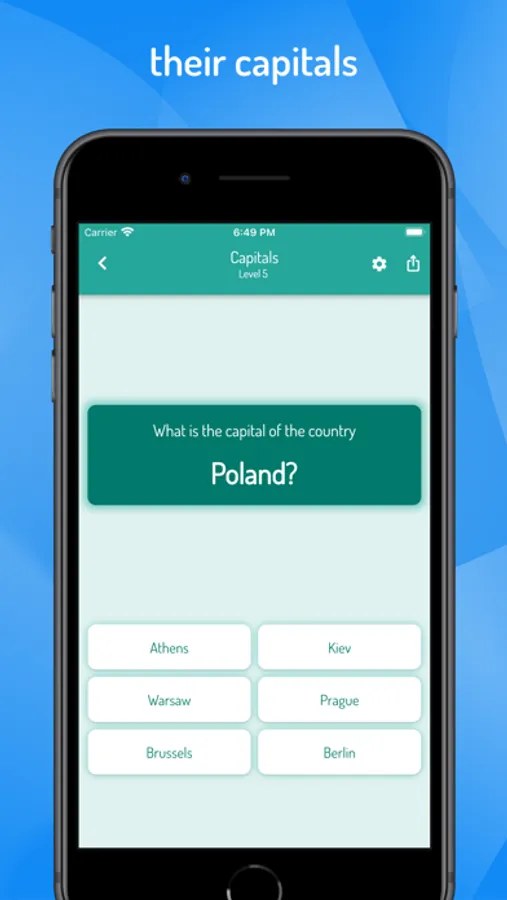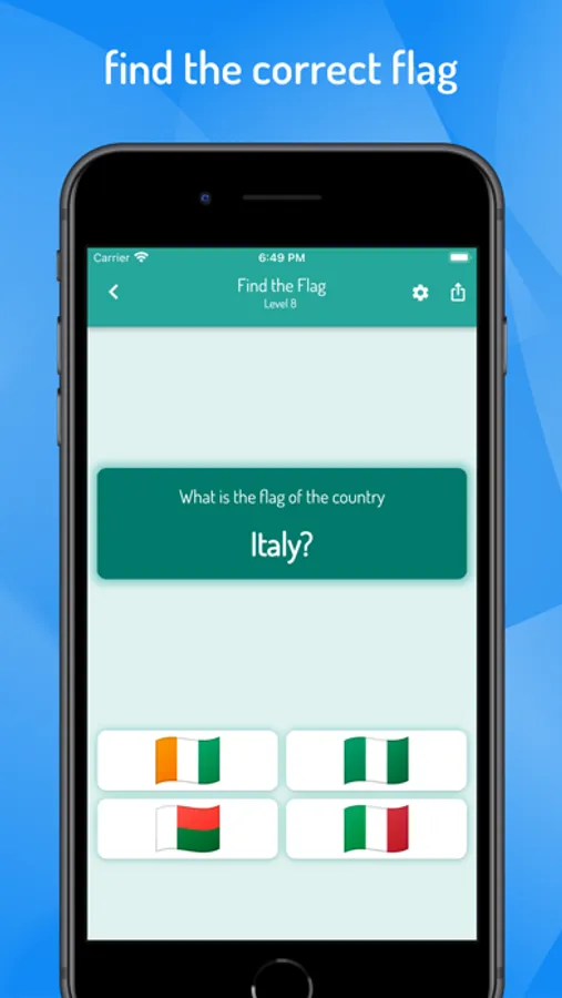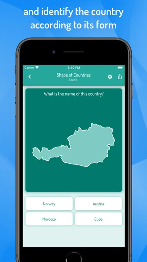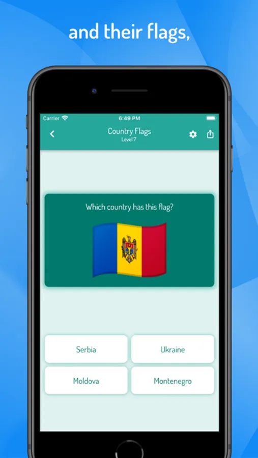 In this geographic game, you will learn to know the names, flags and capitals of all the world countries as well as know how to identify them on the map of the world.