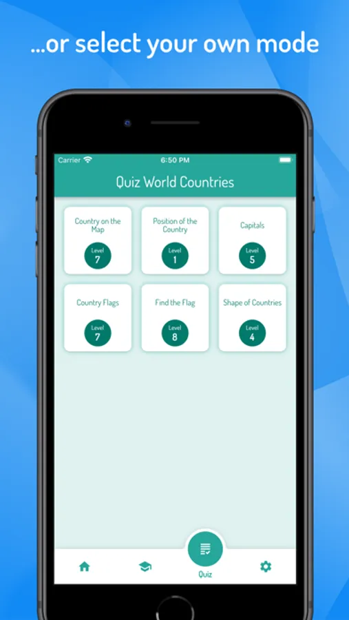 In each quiz mode, you can select between two, four or six choices offered. If your answers are correct, you advance to a higher level with increasingly difficult questions.