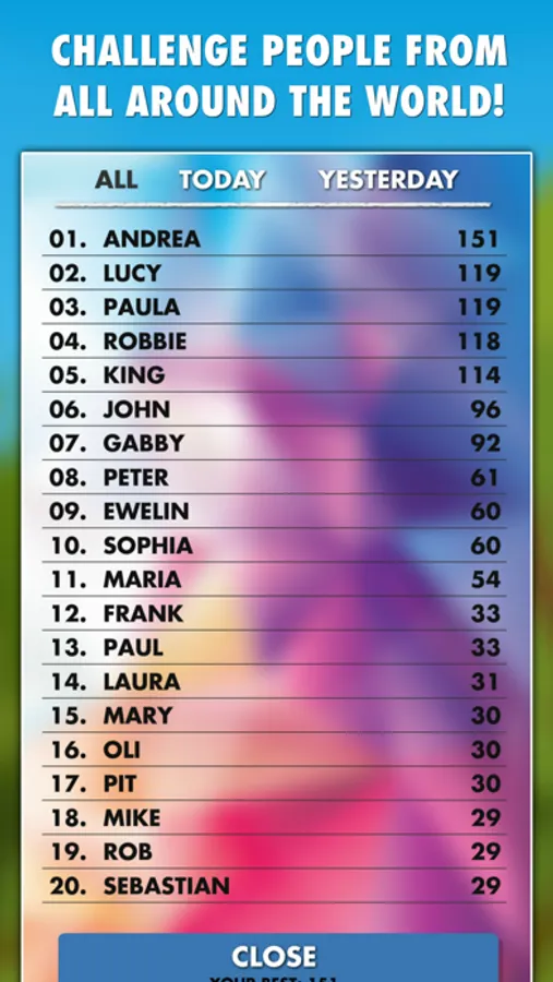 Challenge other people from all around the world and try to make it into TOP20 highscores? (9 different leaderboards included)