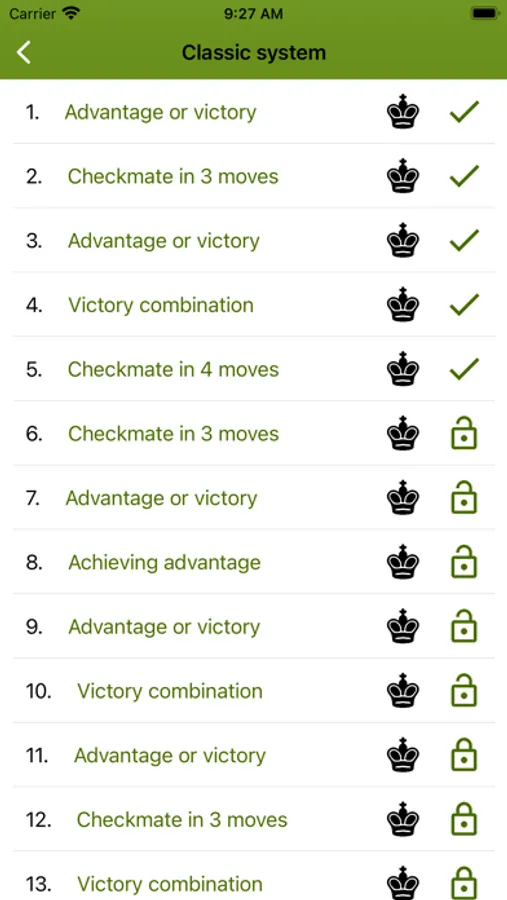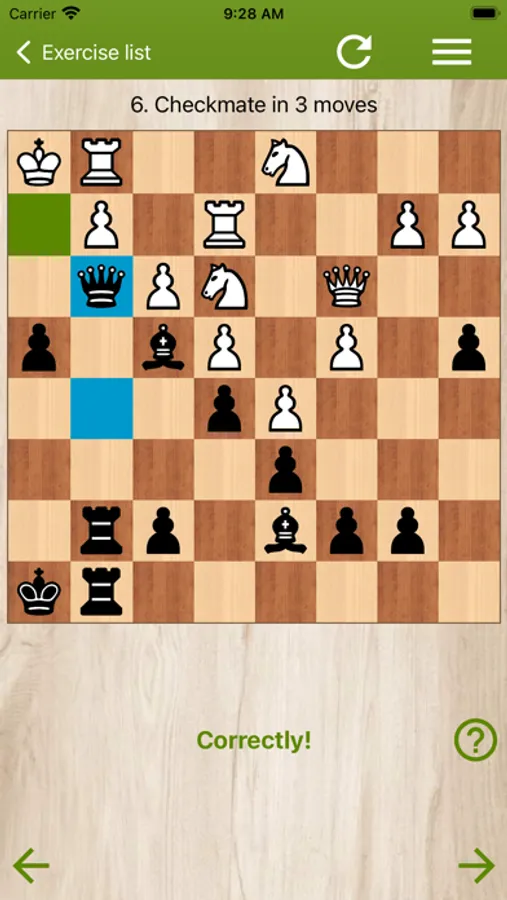 The free version contains 24 interesting puzzles on combinations with victory, achieving advantage and checkmating in several moves.