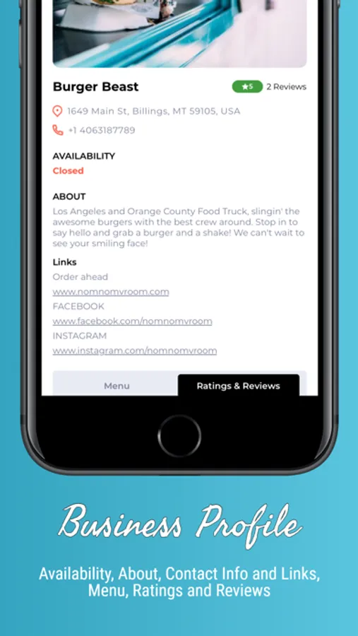 ◉ Add Links: Do you have an ordering platform? Add it! Facebook? Add it! Instagram or website? Add it!
