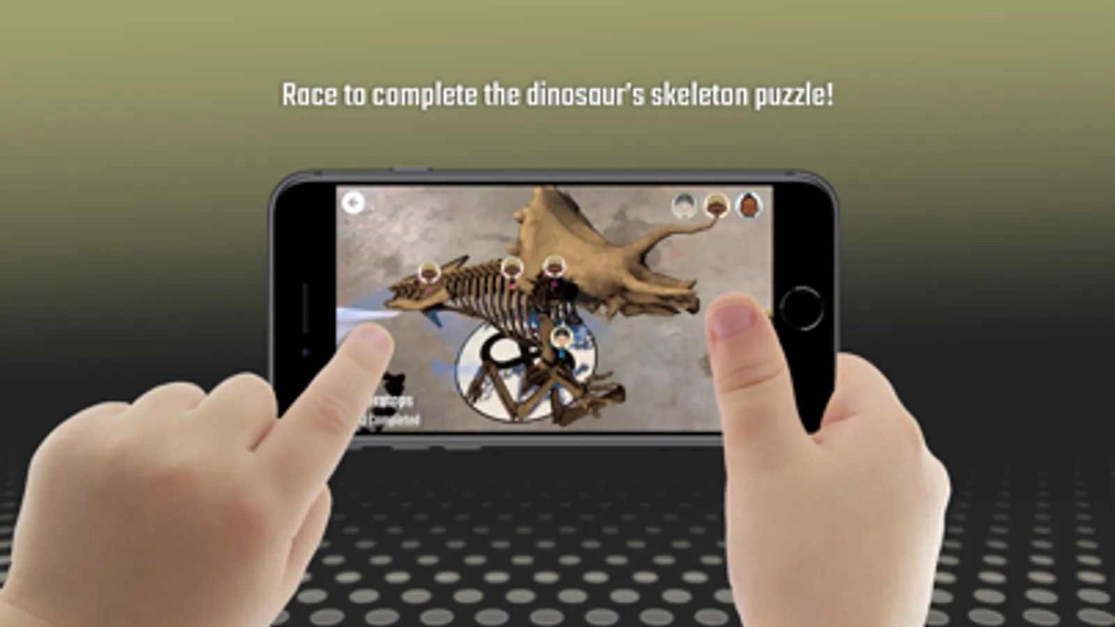 Race to build the skeleton of Triceratops, Tyrannosaurus, Brachiosaurus and Giganotosaurus in Augmented Reality, and unlock educative information about these Dinosaurs upon completing the puzzle pieces!