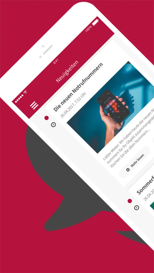 Mitteilungen zu Ihrem Haus und Mietverhältnis direkt über unsere App.