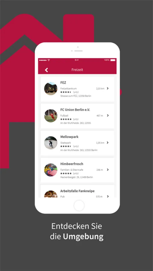 Informieren Sie sich z.B. über Geschäfte, Ärzte, Erstatten und über die Öffnungszeiten in Ihrer unmittelbarer Umgebung.