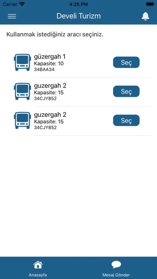 Uygulama, Develi Turizm tarafından taşımacılık hizmeti sunulan yolcuların kullanımı için hazırlanmıştır.
