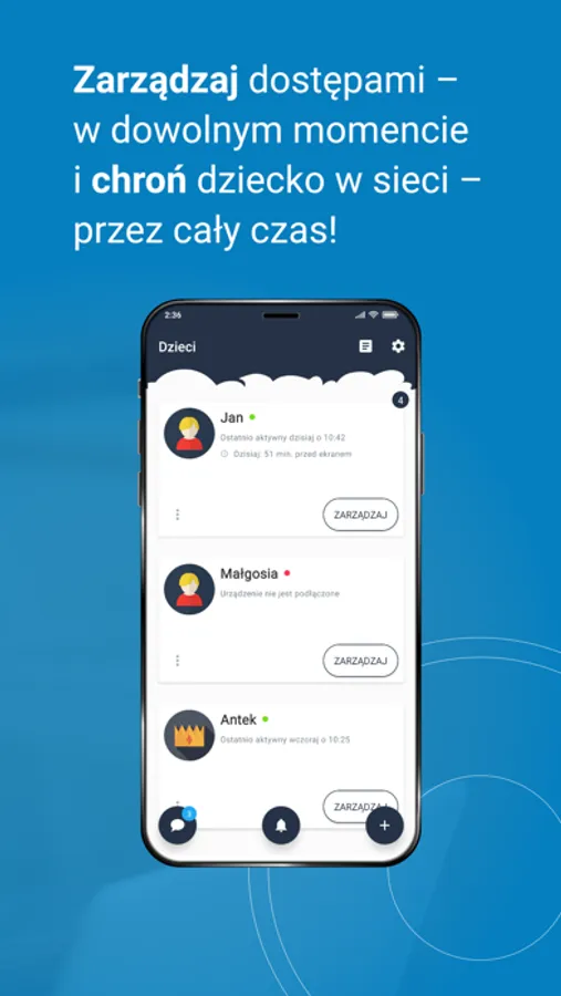 A co jeśli dziecko będzie chciało skorzystać ze strony lub aplikacji, do której nie ma dostępu? Wtedy wyśle Ci prośbę o jego udzielenie – możesz ją zaakceptować lub odrzucić. Do dyspozycji macie również komunikator, za pomocą którego wymienicie wiadomości tekstowe.
