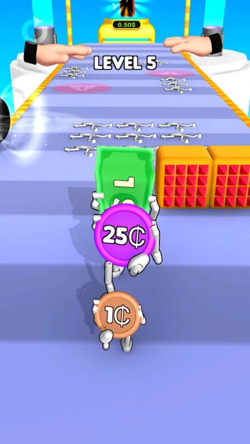 - Drag the character left and right and collect all the coins on the way