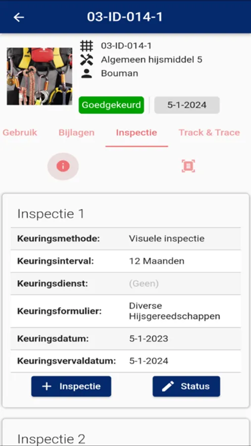 The GB Mobile app is a supplement to our web tool Gereedschapbeheer.nl and apps for inspection (GB Inspect) and warehouse management (GB Scan). This provides you with a complete online automation of your equipment management.