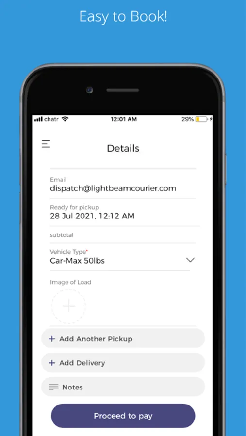 "Introducing Lightbeam Courier Ltd., the newest, easiest and fastest way to get your items delivered. We pair you with approved drivers in your area to make sure your package gets there in Lightbeam Time!.