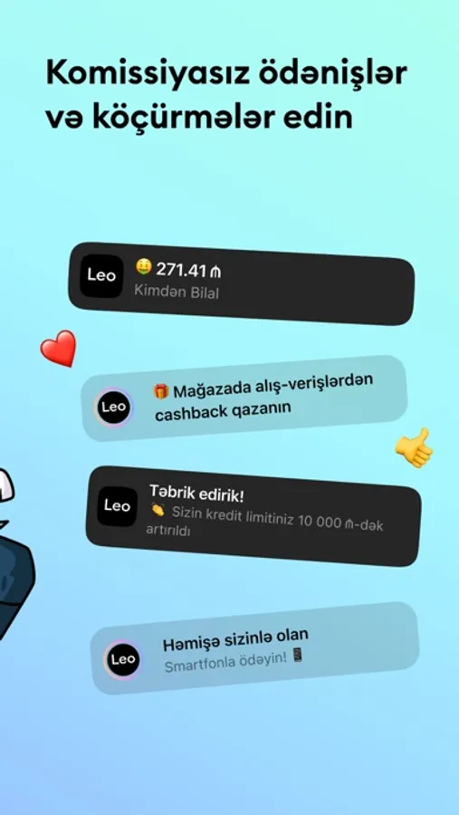 - Leobank kartına köçürmə və kommunal ödənişlər pulsuzdur.