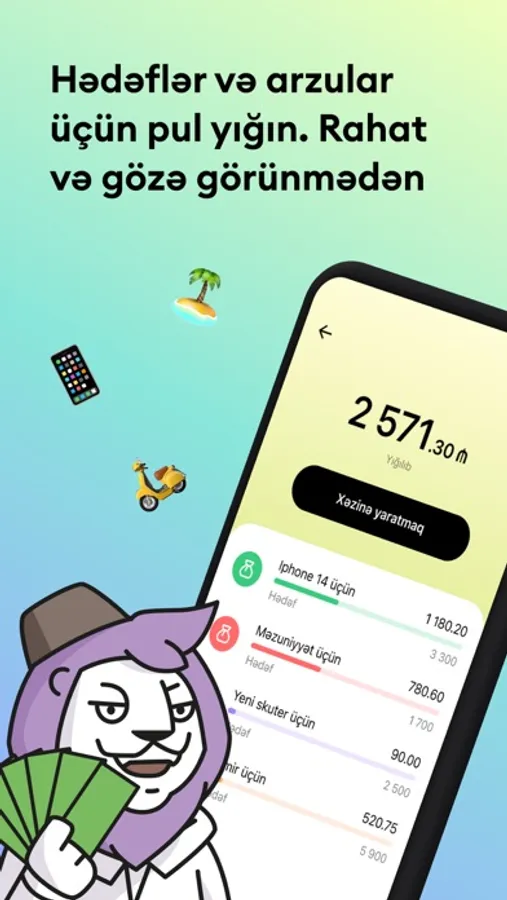 - Hər ay “Xəzinə”dəki məbləğdən illik 5% əldə edin.