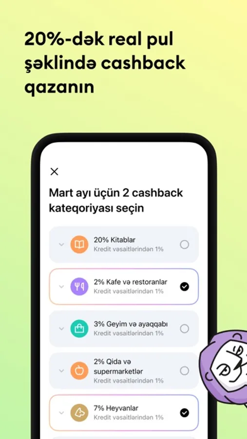 - Bankdan və tərəfdaşlardan 20%-dək keşbek.