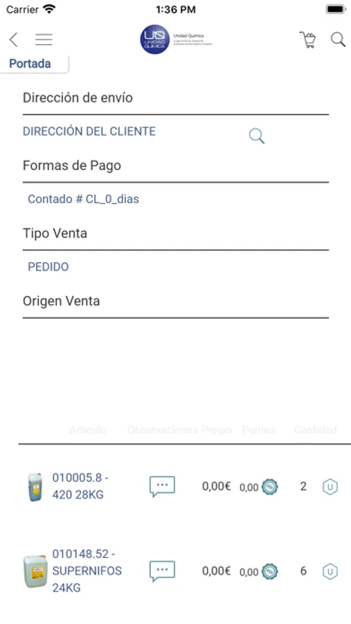 Por eso Le ofrecemos la nueva aplicación de Unidad Química. Navegue entre nuestras diferentes divisiones y encuentre el producto más adecuado para usted y su negocio. En nuestra nueva área cliente podrá encontrar todas nuestras referencias, consultar precio, unidades de venta, stock, documentos adjuntos, etc. Toda la información que necesite a un solo click.