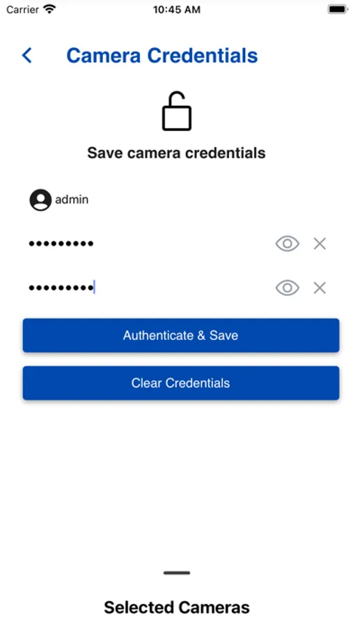 • Save camera credential to application