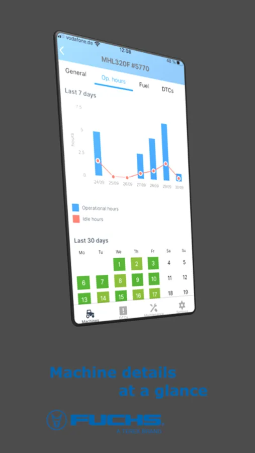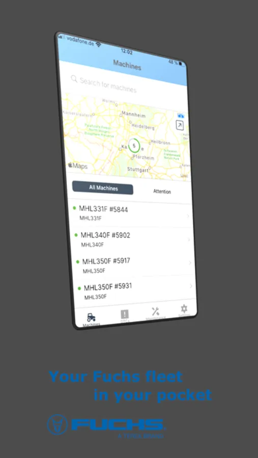 In addition to the Fuchs Connect telematics portal, you can use the Fuchs Connect app to easily access your Fuchs fleet data with your existing account.
