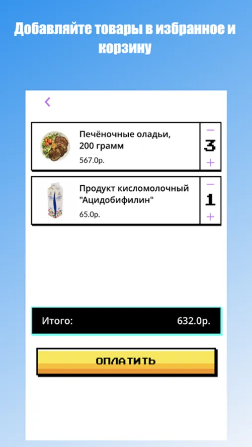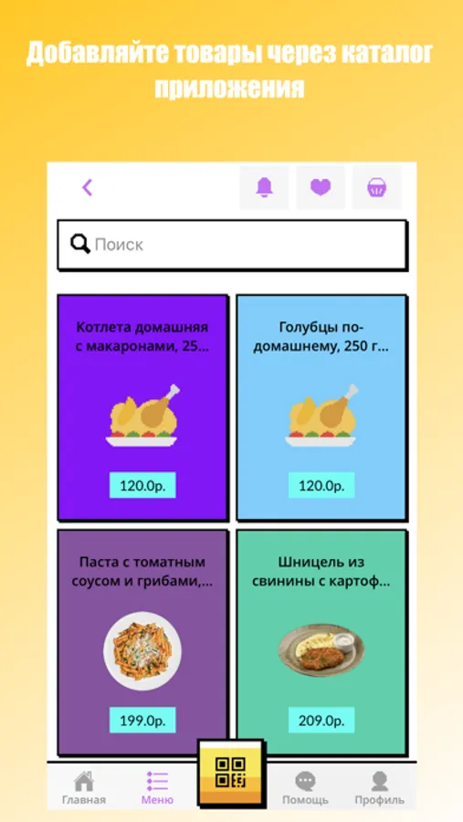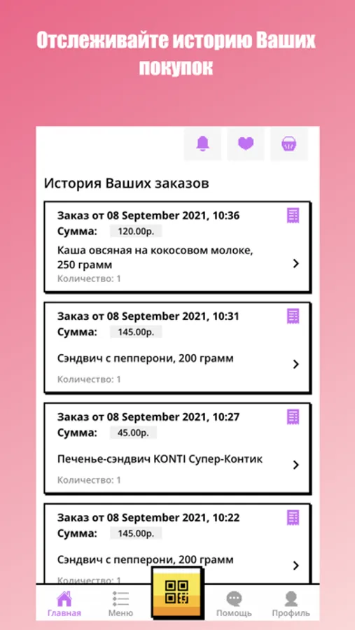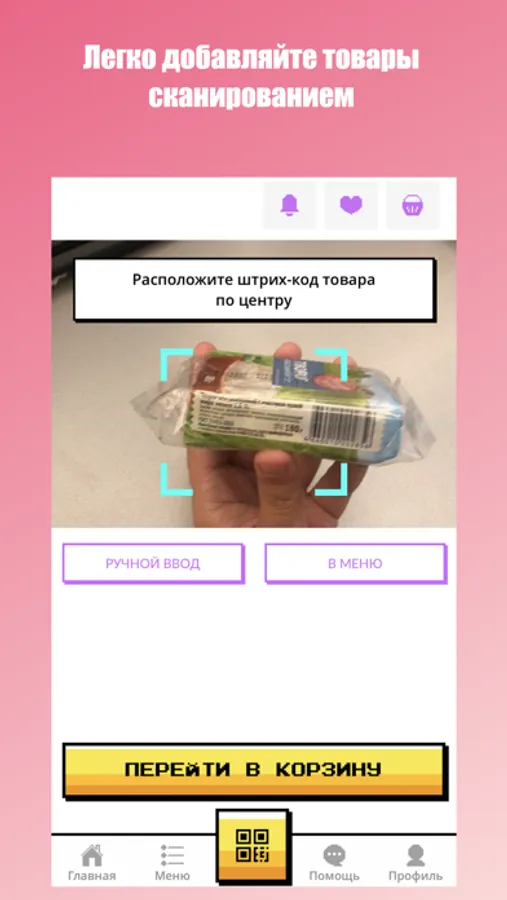 Купить еду очень просто. Откройте приложение, отсканируйте штрихкоды выбранных товаров и завершите покупку, деньги спишутся с привязанной карты автоматически.