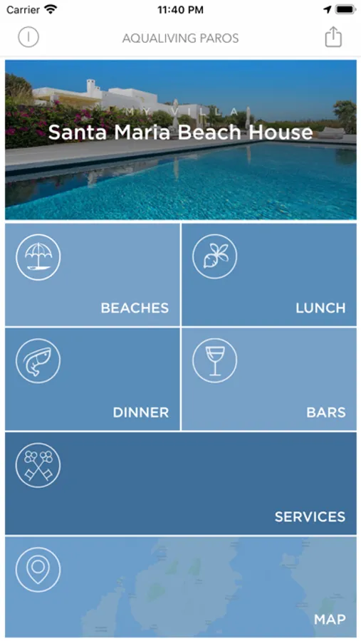Official App for Aqualiving's Concierge Services on Paros with information about the island's beaches, restaurants and things to do, offering a list of our company's services.