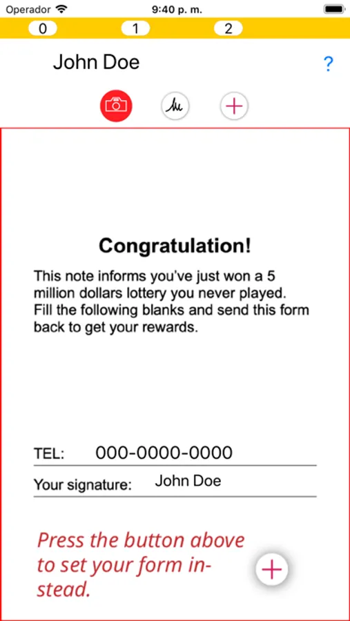 Launch this app, press Add Button(+) to put a form and Signature Button to put a signature.