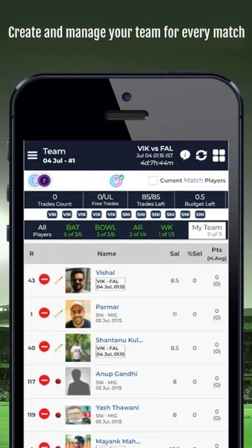 Our fantasy game is a great way to showcase your sports knowledge and prove your prowess! So we provide our users with research tools also in which you can see the future projected scores of each players which can help in the decision making process. Playing on Cricheroes-CricBattle requires thought, proficiency, involvement and some amount of research about the players, match schedules and tours. Put your Cricheroes-CricBattle fantasy team to the test.