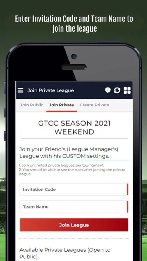 Step 2: Join public leagues or create your own private league and invite your friends.