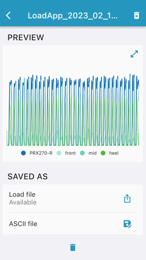With loadapp exporting your data as ASCII file is easy. Send any measurement directly from your phone to another device within seconds.