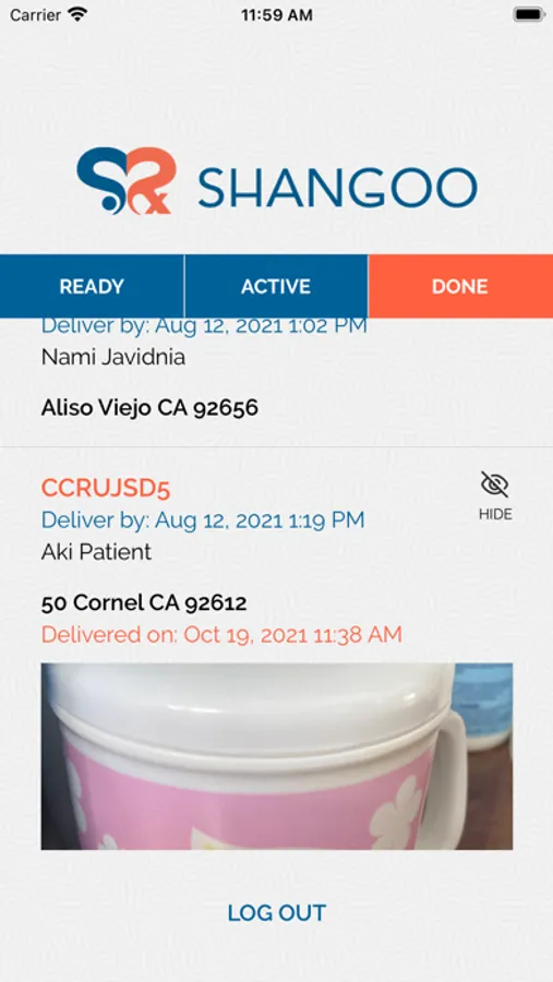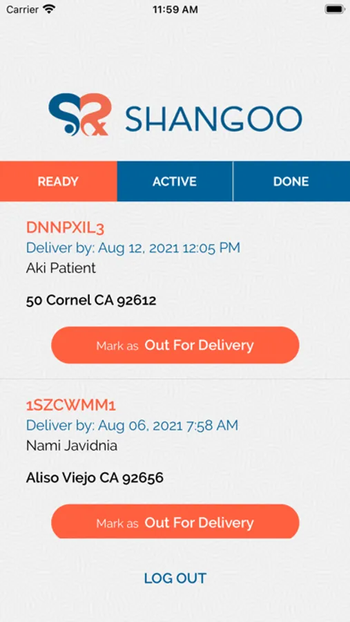 App used by Drivers in the Shangoo Pharmacy partner network to view their assigned orders, and confirm delivery.
