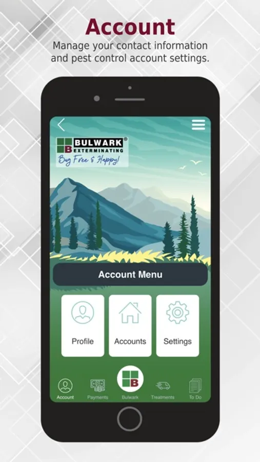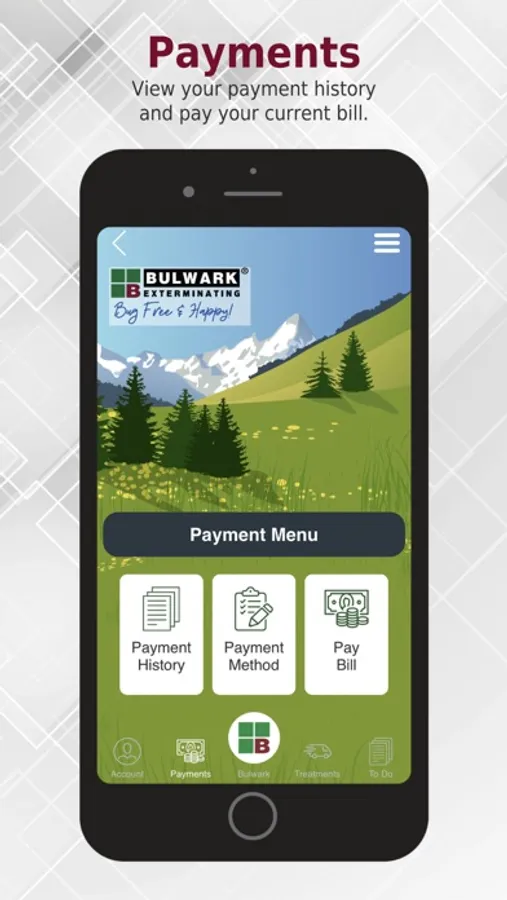 • Main Menu – Request service, pay your bill, and manage your Bulwark pest control accounts.