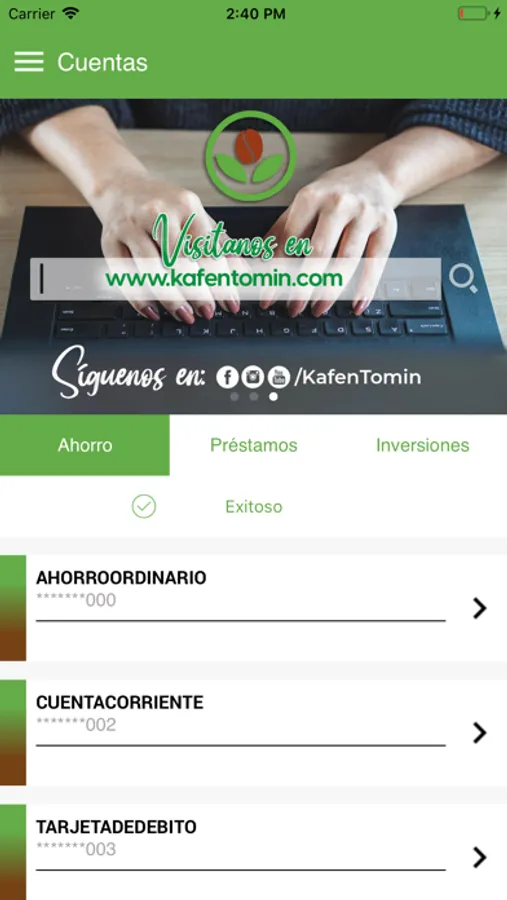 Aplicación que brinda a los ahorristas de Kafentomin la posibilidad de realizar transacciones financieras desde su celular en cualquier lugar. Una sucursal en la palma de tu mano.