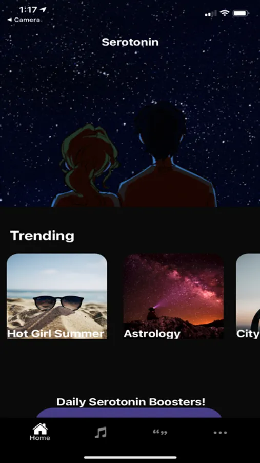 Serotonin Boost is an App that has several purposes. Serotonin Boost promotes overall good positive vibes and mental health. It has the capability to inspire you when you're feeling unmotivated with motivational quotes from your favorite celebrities to historians. It also can be used to listen to free Lofi music if you want to feel empowered to feeling relaxed.