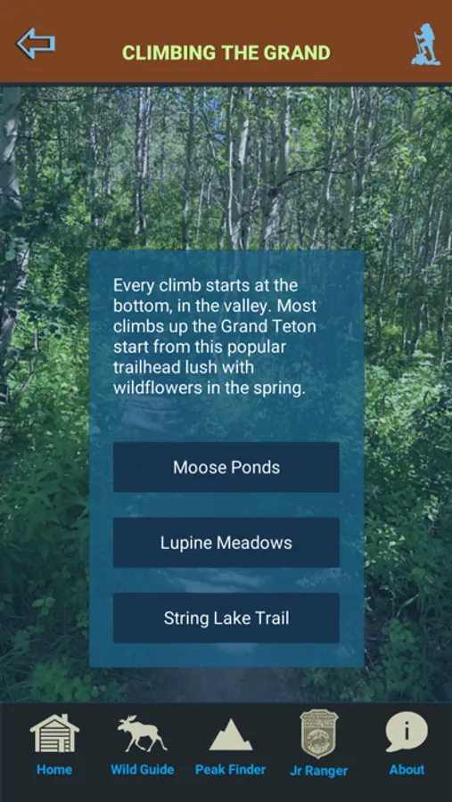Dive deep into Jenny Lake at Grand Teton National Park! Find augmented reality wildlife on the Discovery Trail, explore the Wild Guide, check out the Peak Finder, and grab your 3D AR gear to climb Grand Teton. And for potential Junior Rangers, track progress and earn your badge!