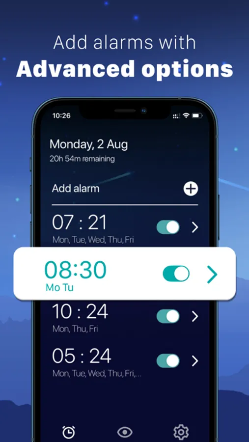 Our app provides many attractive and effective wake up features. Very easy to use. Easy to set up. The unique warm-up technology for the eyes will allow you to wake up quickly and start the day well!