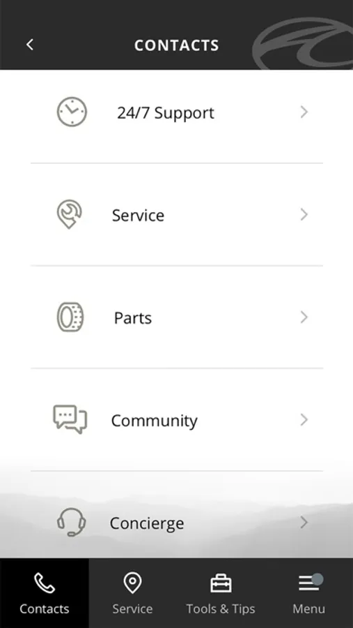 The app also provides convenient access to contact information for parts and service, 24/7 support and your concierge team.