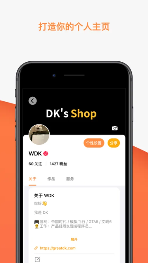 - 经营你的个人主页,将作品出售,会员订阅,赞助,服务,以及你的社交主页聚合在一处