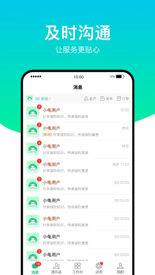 小龟保是一款为保险工作人员提供工具服务的平台,通过科技的力量赋能使用者,让工作流程简化有效率。
