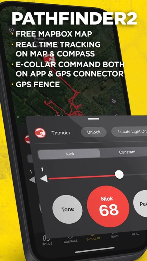 The app is also available on a smart watch. Paired with a new GPS Connector’s tactile “E-COLLAR FUNCTION” button, PATHFINDER2 is more optimized for action without interruption.