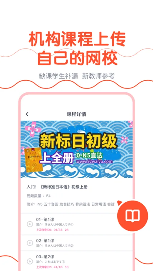 机构课程:机构自已自助上传本机构的视频课程内部分享